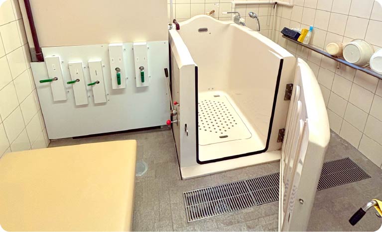 ご自宅で浴槽に入れない方も肩まで浸かることができます。アロマやゆず湯などのイベント湯も行っています。